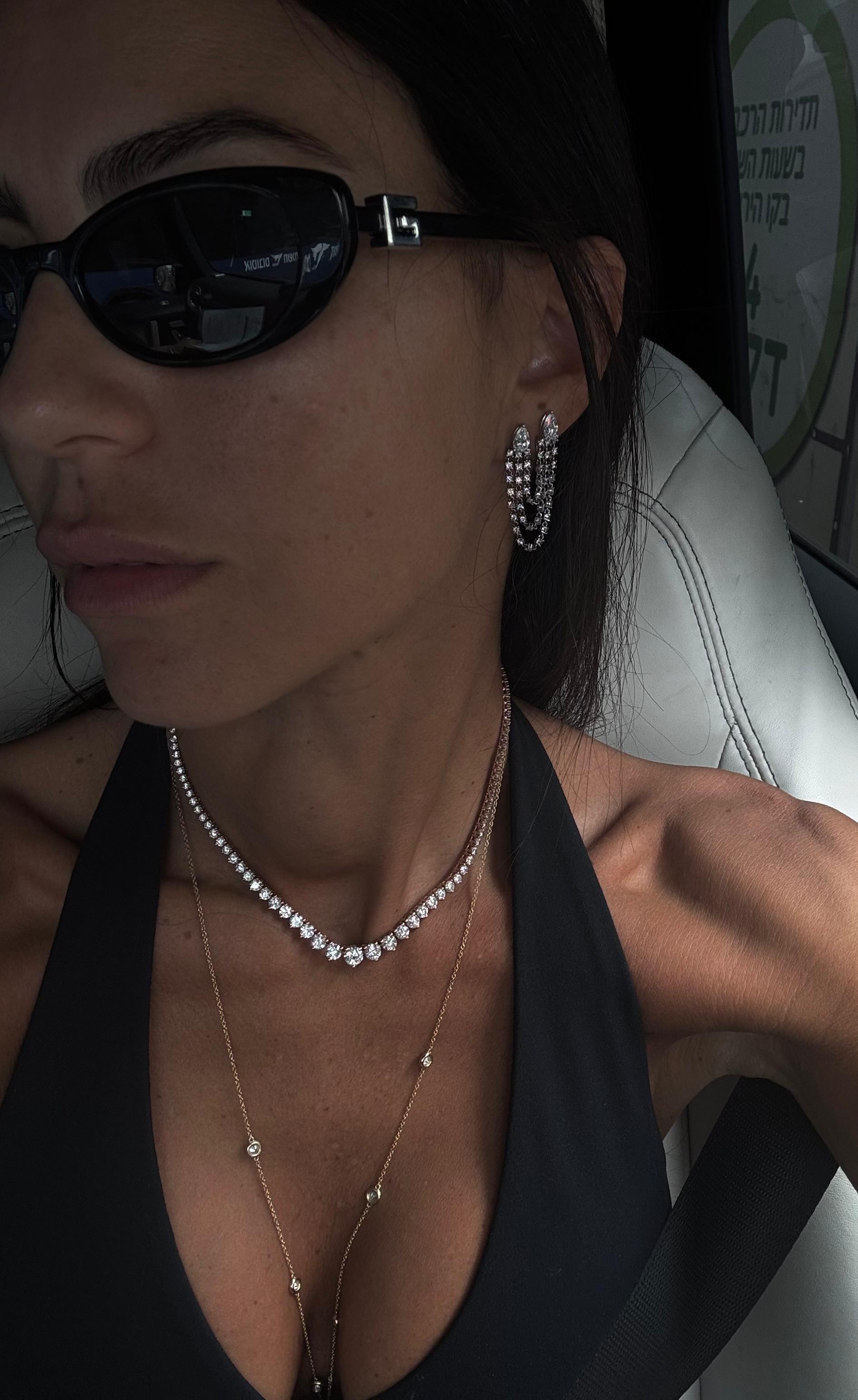 A statement piece that redefines elegance. Two pear-cut diamonds anchor cascading double rows of brilliant stones, draped in warm gold to create movement, fluidity, and modern sophistication. A bold yet graceful design that stands out effortlessly.
