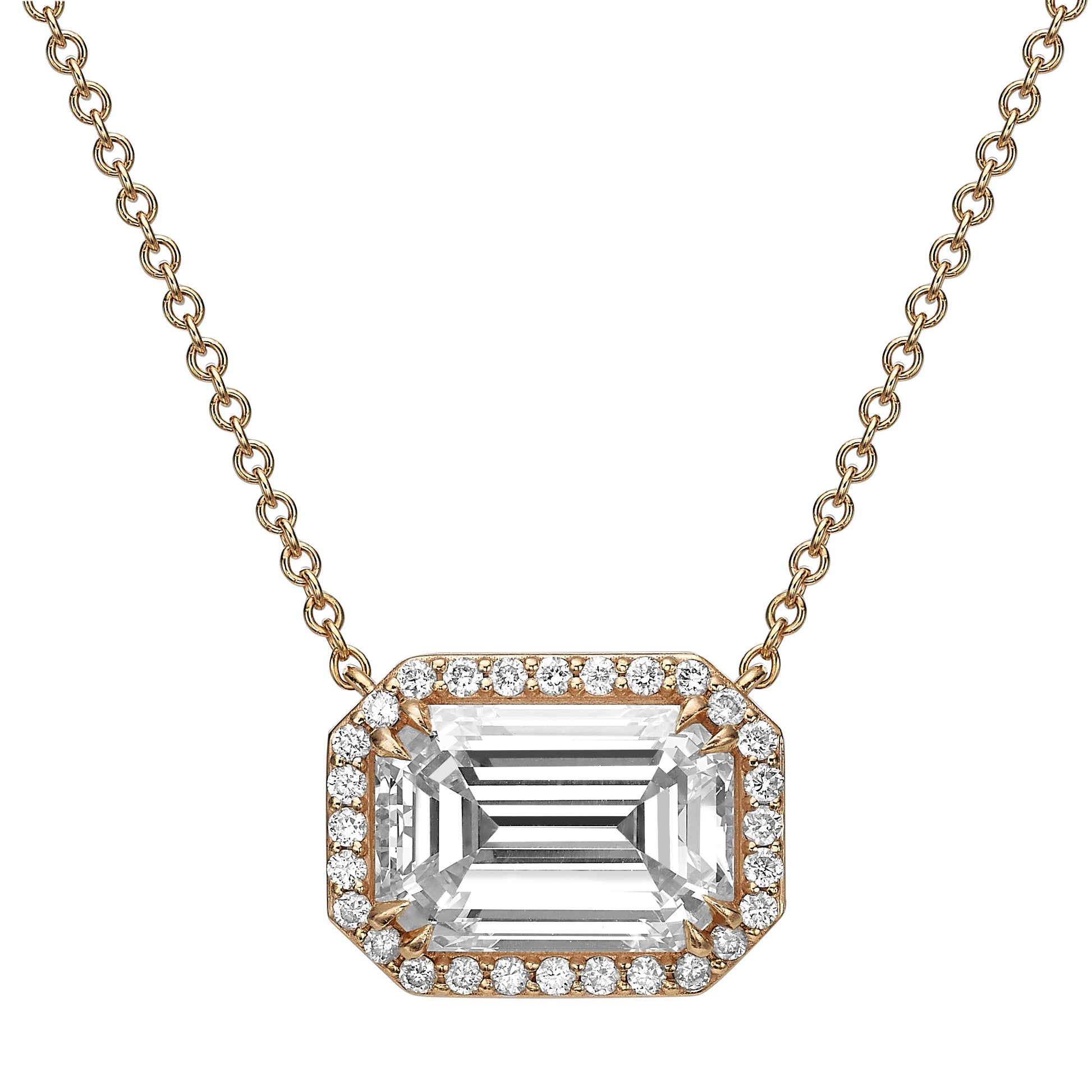 Emerald-Cut Diamond Halo Necklace