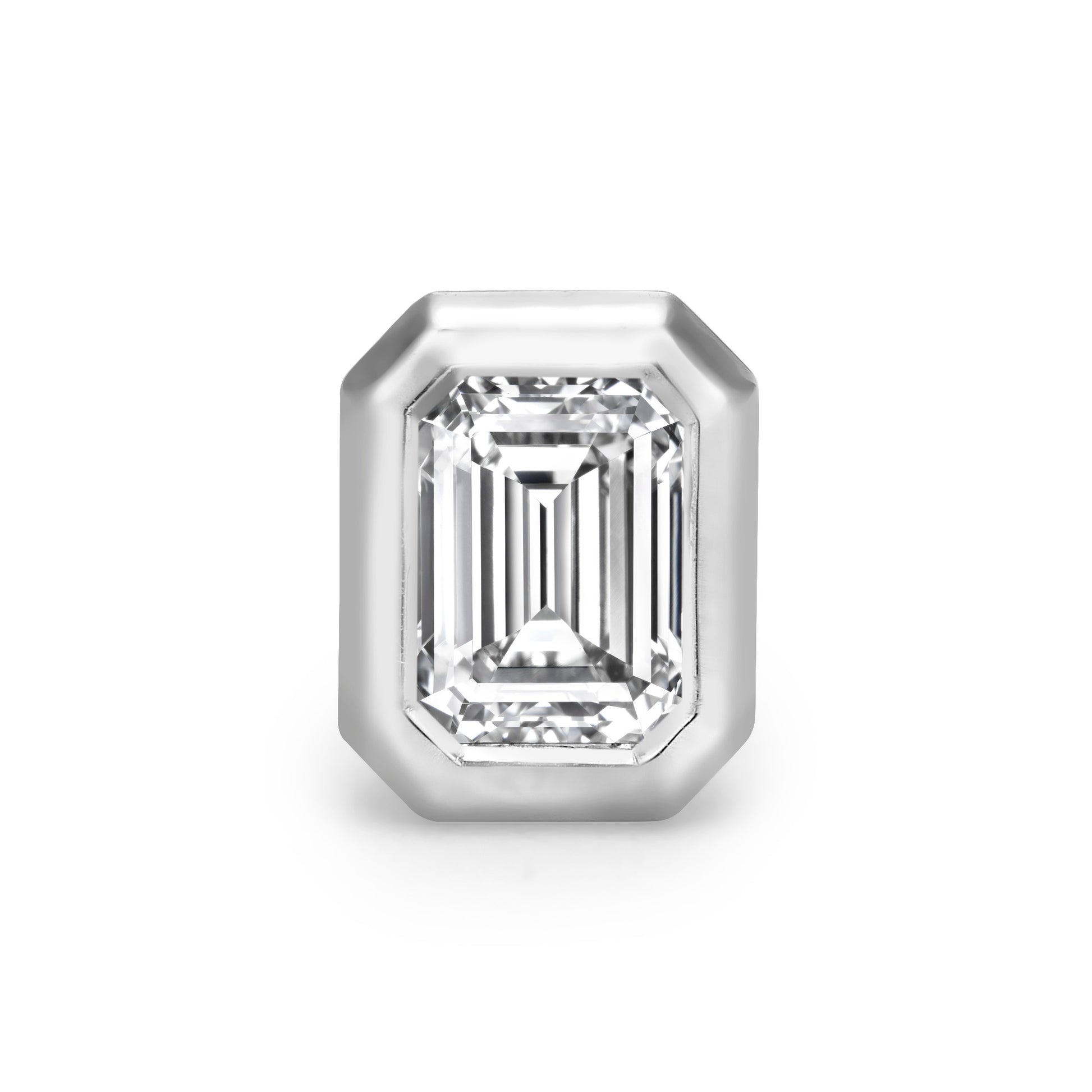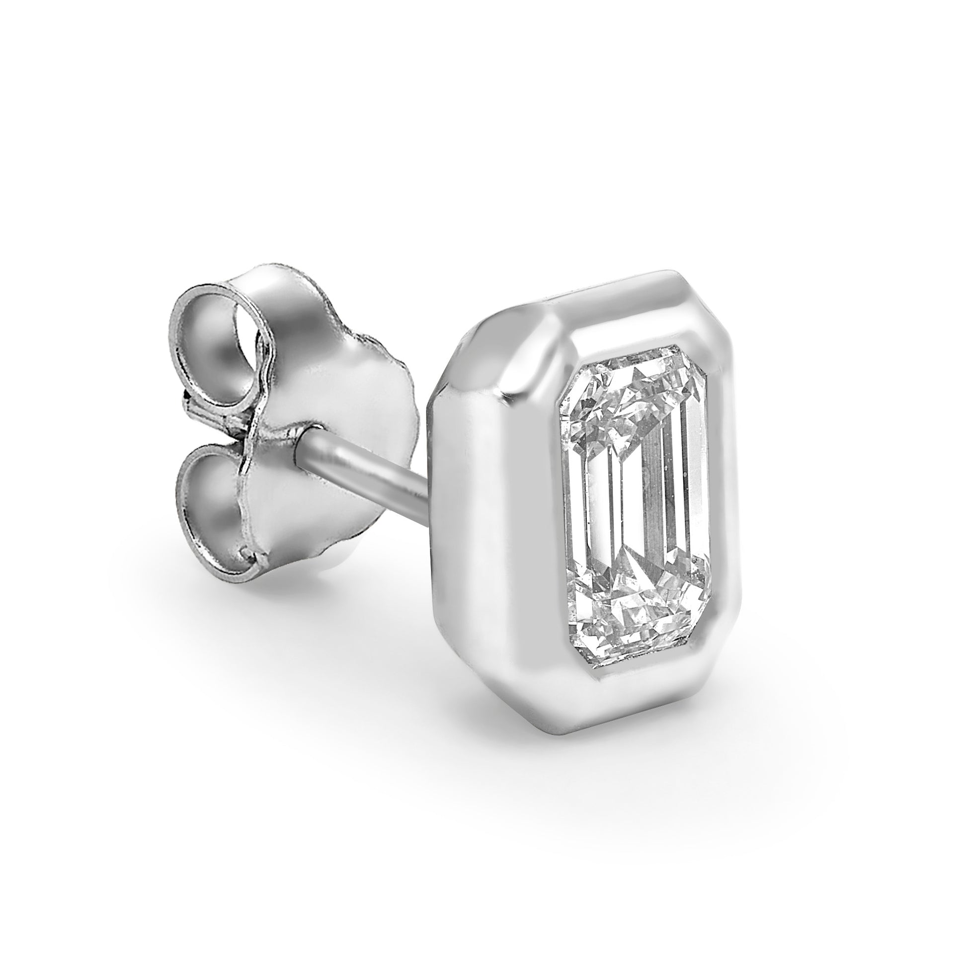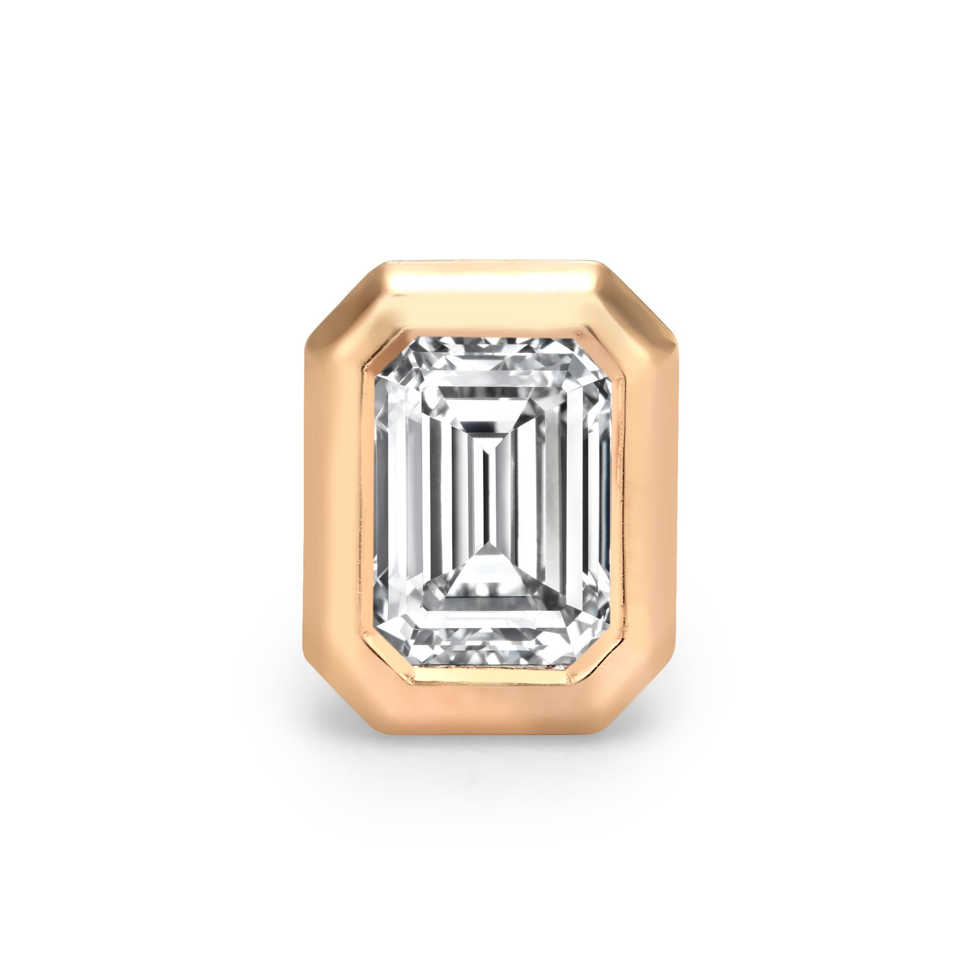 A refined single stud earring featuring a lab-grown emerald-cut diamond, set in a sleek rose gold bezel. Designed for effortless elegance and everyday wear.