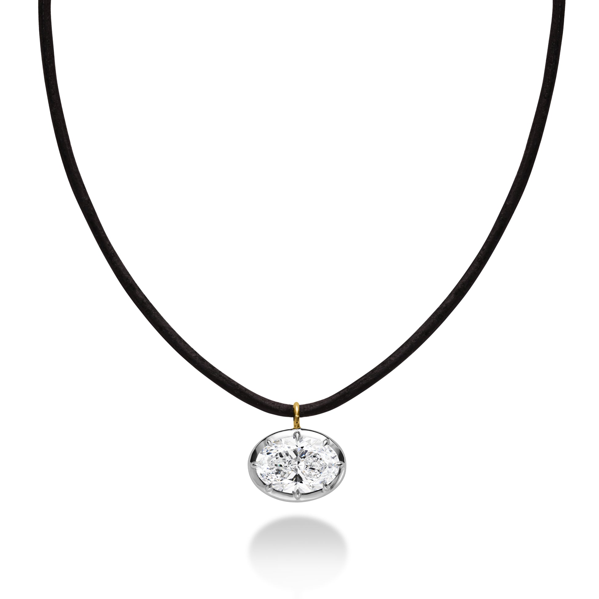 Oval Diamond Bezel Pendant on Leather Cord Necklace