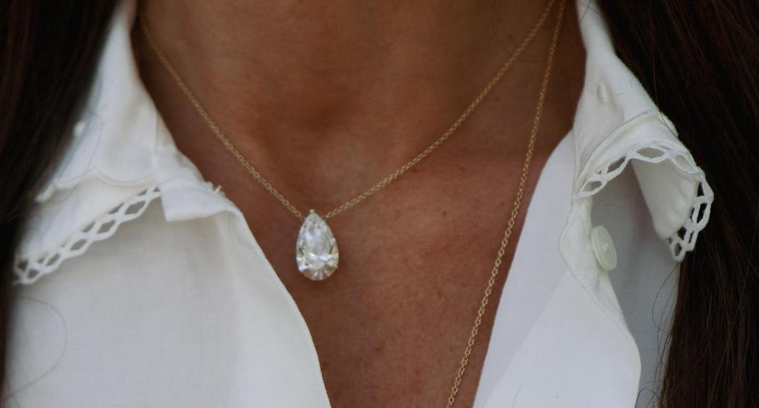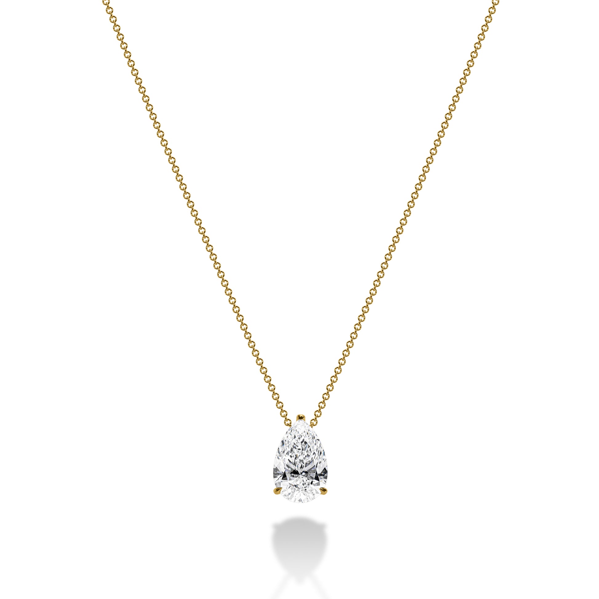 A timeless classic: a pear-cut diamond suspended delicately on a fine gold chain. Minimalist yet powerful, this necklace radiates elegance with every movement.