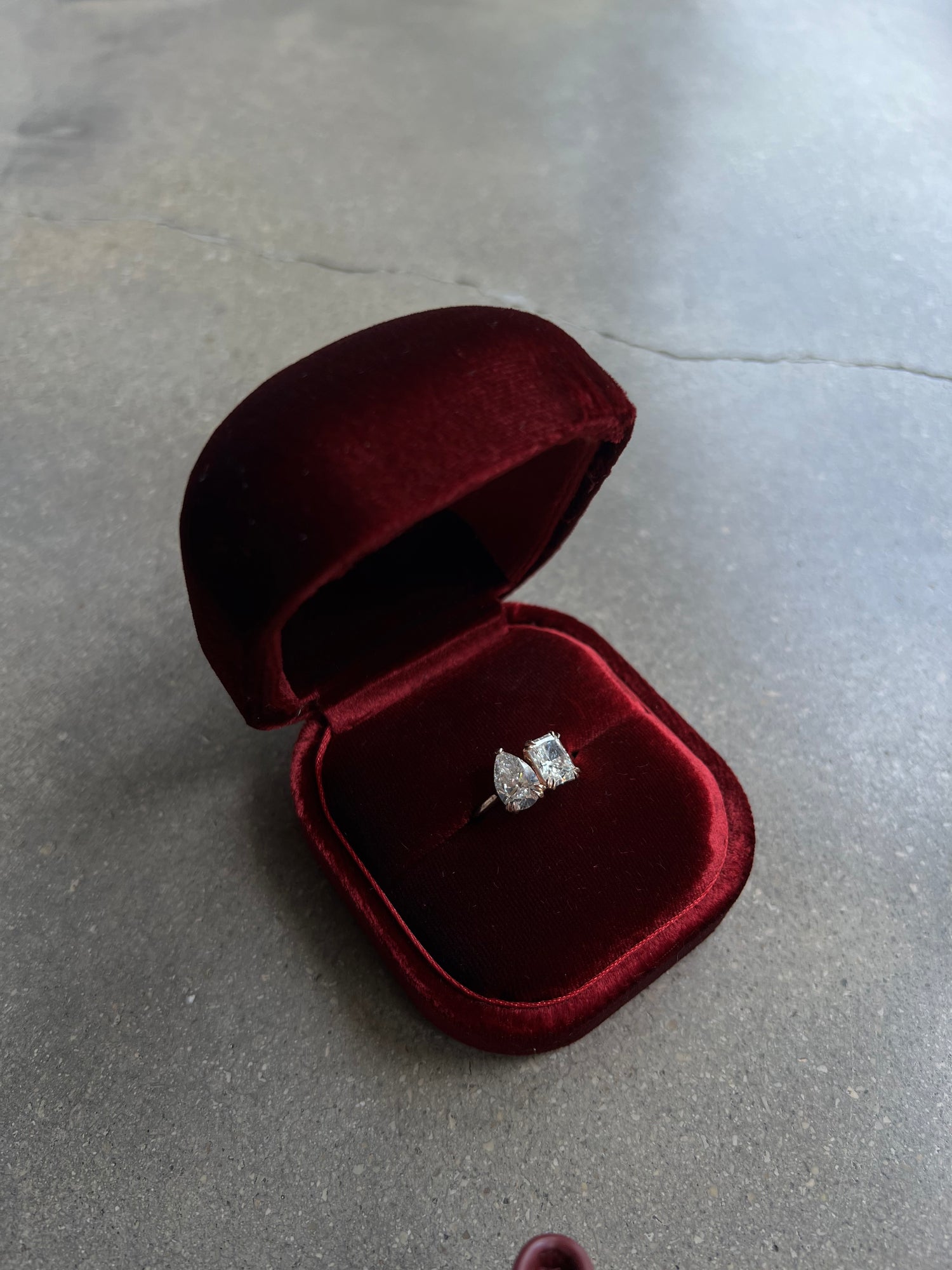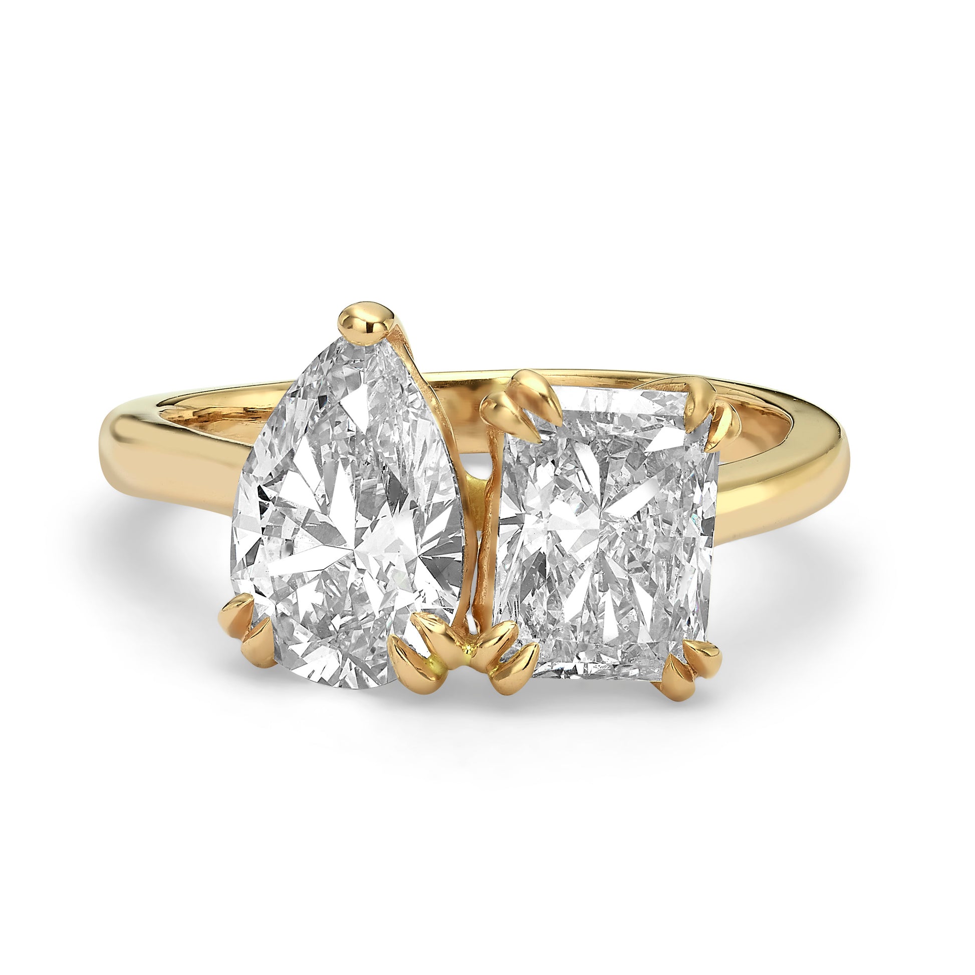 Two lab grown stones brilliance meets modern design—featuring pear and radiant-cut diamonds in perfect harmony.