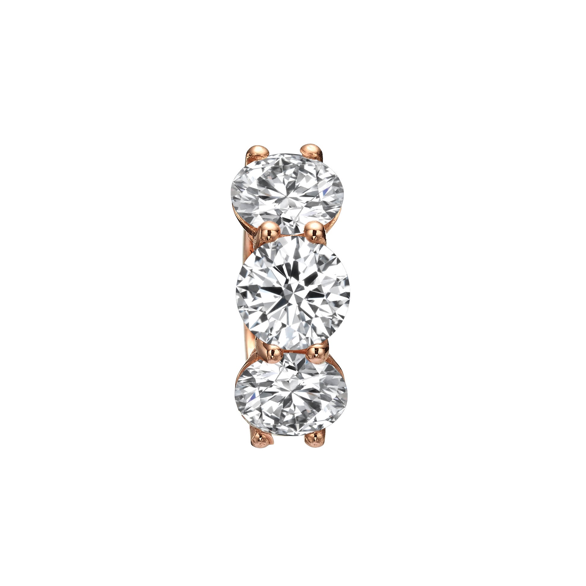 A contemporary earring featuring modern design elements and refined craftsmanship, showcasing three round brilliant-cut lab diamonds vertically aligned in classic prong settings. The graduated stones create an elegant linear silhouette in rose gold. Perfect for the fashion-forward jewelry enthusiast who appreciates timeless design with a modern twist. Sold individually.